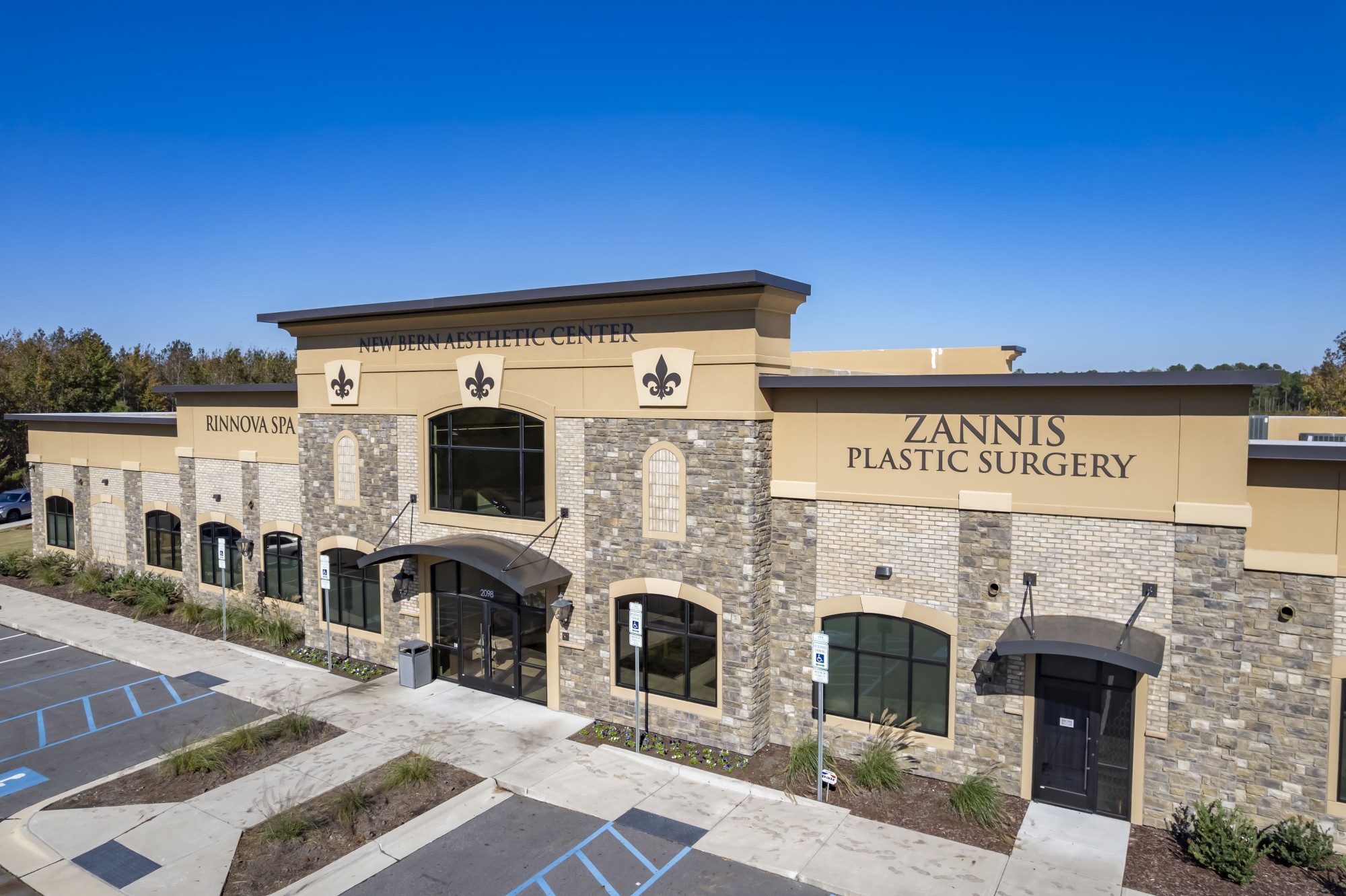 The 13,000-square-foot New Bern Aesthetic Center is a state-of-the-art plastic surgery and spa destination. Features of the Center include a beautiful welcoming lobby, quiet garden in the rear for patient relaxation and discrete entry points for patients.