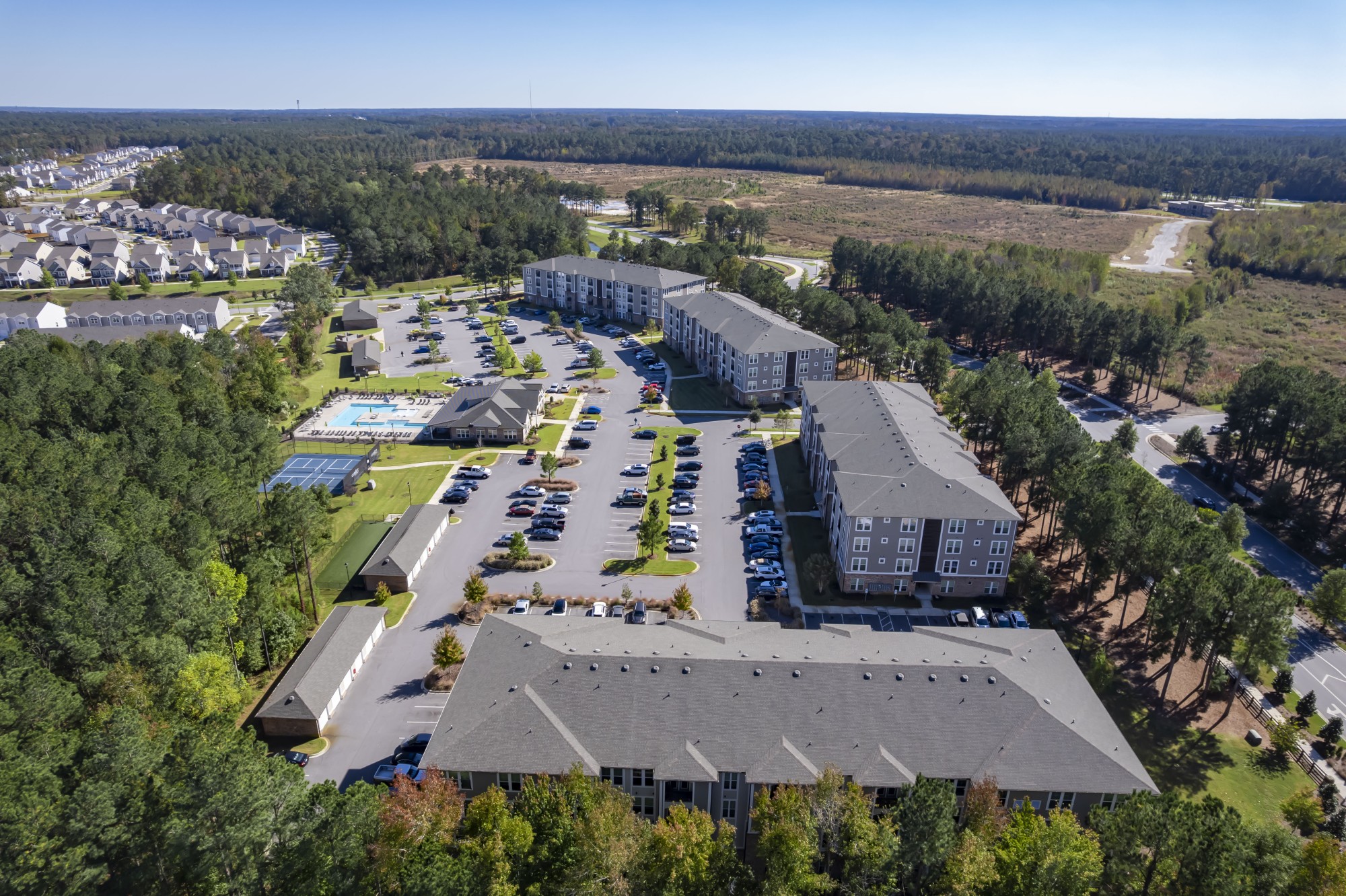 Situated at the front of the community off West New Bern Parkway is Comet West New Bern, presenting 224 apartment homes with luxurious finishes and innovative floorplans. This neighborhood boasts an amenity center unlike any currently experienced in the area. Residents have many opportunities to meet their neighbors at the pool, the fitness center, coffee bar and beer tap! To learn about our apartment homes, click here.